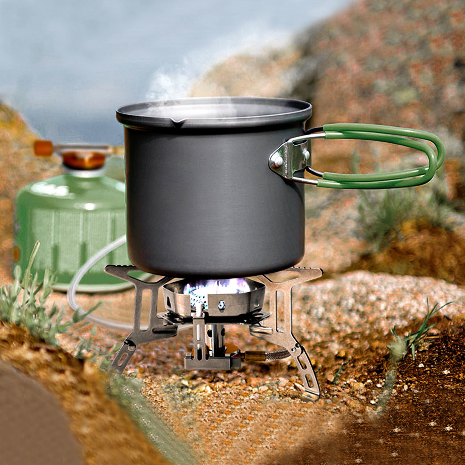*Universal interface*:Having universal interface,most 7/16 thread single butane/butane-propane mixed fuel canisters(EN 417) gas sources can be adopted,like flat gas tank,liquefied gas cylinder,and Gute gas tank,etc.. Ideal for camping,backpacking,hiking,and fishing.