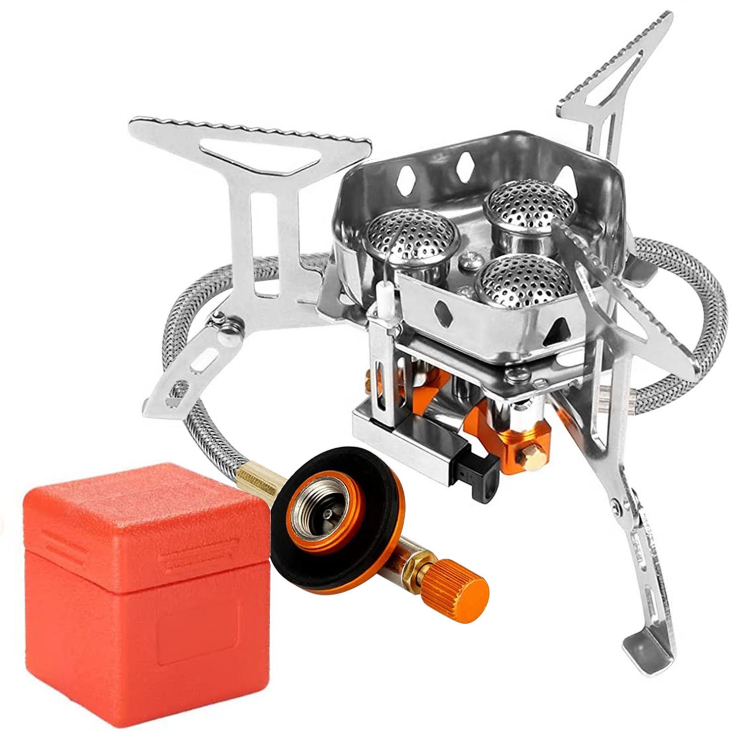 *Portable & Foldable*:Lightweight,portable and collapsible,with a 3.5x3.5x3.9in handhold case,our camping stove is space saving and convenient to carry in your outdoor picnics.
