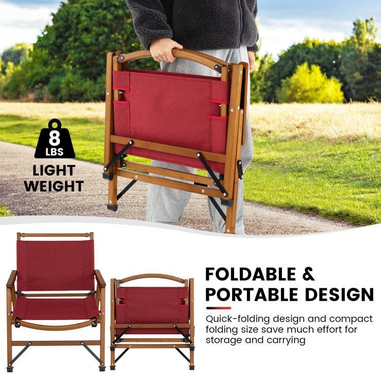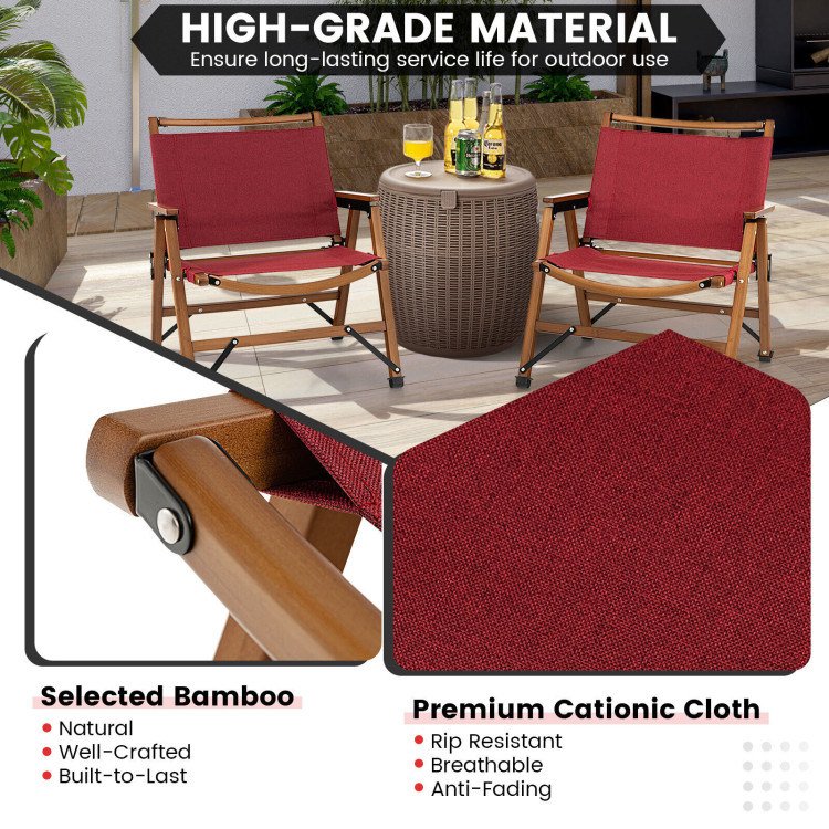 Patio Folding Camping Beach Chair with Solid Bamboo Frame
